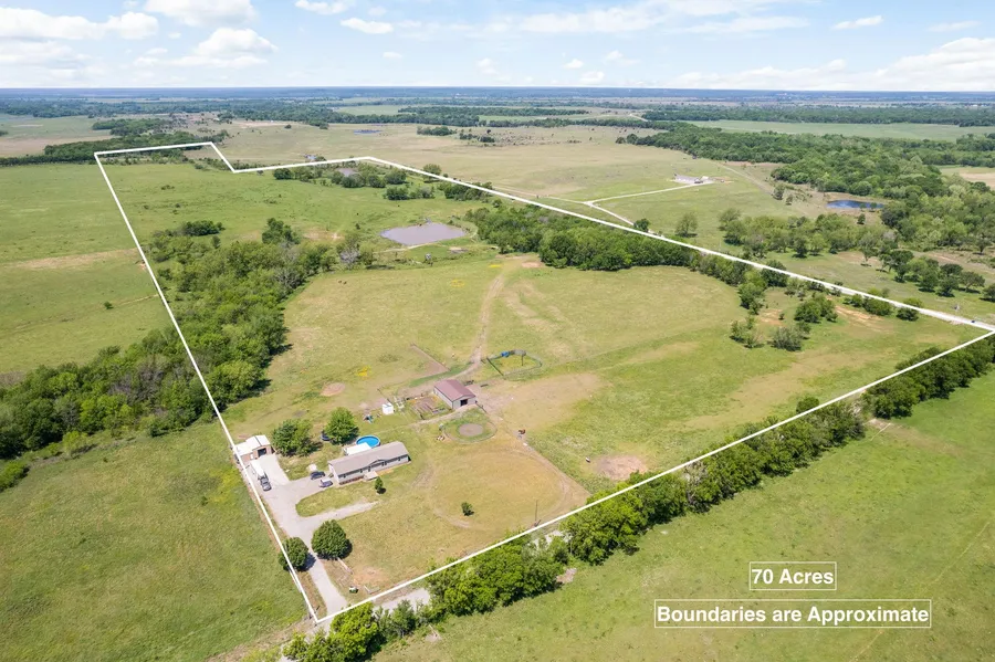 Welcome to your homestead or recreational retreat! 69.92 BEAUTIFUL acres of pastures, ponds, wet weather creek and mature trees. Home features large open-concept kitchen and living room with pantry and spacious bedrooms. Large covered back deck and above ground pool. 30x50 pole barn includes 1 stall (room for more), tack room, feed room and milking stand. Large building and workshop perfect for tinkering. Smaller storage shed as well. Deer stand stays. Fenced and cross fenced for livestock. Storm shelter. Built by Victory homes in 2012.