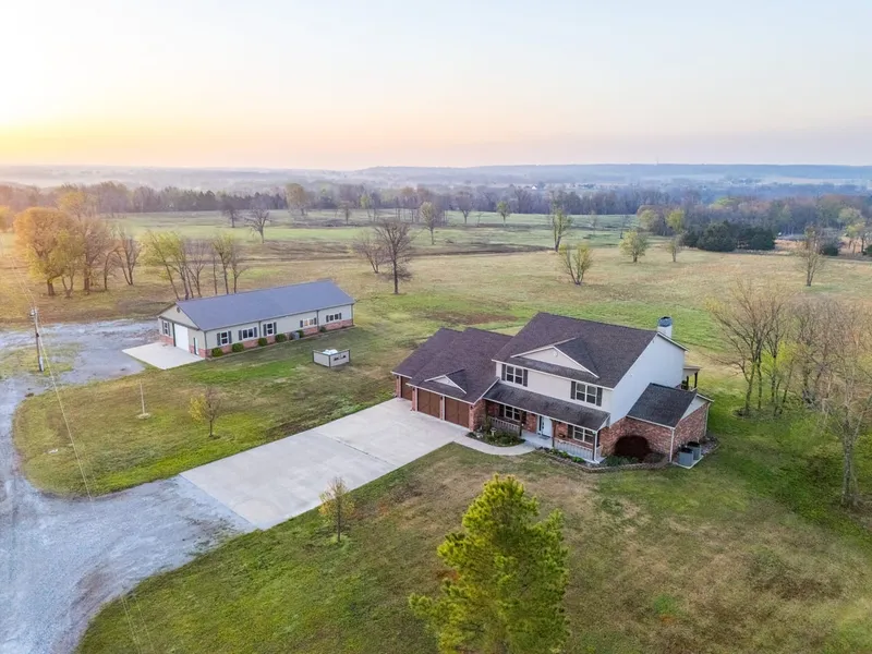 Welcome to this breathtaking 49+/- acre property in Craig County, Oklahoma! When it comes to country living, this property truly has it allcomfort, recreation, and privacy! Located at the end of a gated, dead-end road, this property features a beautifully built 4-bedroom, 4.5-bathroom custom home, complemented by a 36x70 temperature-controlled shop. From the moment you step inside the home, you’ll notice the attention to detail in its design. The open-concept living room boasts a stunning stone fireplace, perfect for cozy winter evenings. The kitchen is equipped with granite countertops, a butcher block island, high-end stainless steel appliances, and ample counter space, making it ideal for preparing meals and hosting large gatherings. The master bedroom features an elegant ensuite bathroom and an additional connected room that can be customized to suit your needs. Also on the main level is a spacious office, providing a quiet and functional workspace. Upstairs, you’ll find a massive entertainment room with a second stone fireplace and a kitchenette. Large windows in this room offer exceptional views of the property, adding to its charm. Every corner of this home has been thoughtfully designed for comfort and functionality, creating a welcoming space for guests and a stunning home for your family. Step outside onto the back porch, where you’ll find an in-ground hot tub and a spacious area for outdoor gatherings. Adjacent to the porch is a fire pit, perfect for cool evenings under the stars. The property also includes a 36x70 temperature-controlled shop, offering endless possibilities. Whether you need storage for equipment, want to create a second living space, or need a workshop, this shop is ready to accommodate your vision. For outdoor enthusiasts, the 49+/- acres offer a mix of open native grasslands and timber, providing excellent opportunities for hunting deer, small game, and other wildlife. A small pond on the west side of the property serves as a reliable water source for wildlife. Whether you’re searching for a quiet getaway, a family home, recreational opportunities, or all of the above, this beautiful Craig County farm offers it all! The property is conveniently located just 8+/- miles from Vinita, 12+/- miles from Afton, 14+/- miles from Grove, 53+/- miles from Joplin, MO, and 70+/- miles from Tulsa. All showings are by appointment only. For more information or to schedule a private viewing, please contact Will Bellis at (918) 978-9311 or Owen Bellis at (918) 367-7050 .