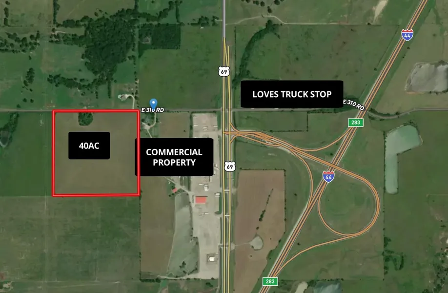 Multiuse property for a great opportunity! Could be Agricultural, Commercial or Residential! Well maintained 40 acres with Rural water onsite on north end of property. New commercial property right next to it. Turnpike right by property for easy access to HWY 69, HWY 66, and Interstate 44. Electric located along property. Centrally located between Tulsa, OK and Joplin, MO 1 hour to both. Take advantage of the endless opportunities with this beautiful, prime piece of land!