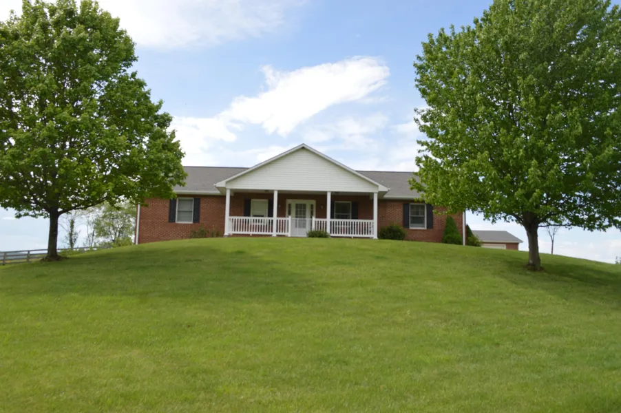 REDUCED - Custom-built brick house with 44 acres of rolling pasture and hay fields. The brick house has eat-in-kitchen, living room with built-in entertainment center, dining room, 3 bedrooms with master suite, 2.5 baths, heated sun room and attached garage. Hardwood floors throughout. Full walk-out basement, plumbed for bath. Heat pump/gas heat and air conditioning. 28x45 brick detached garage/shop. Year-round spring branches, Property fronts on Rt. 42.