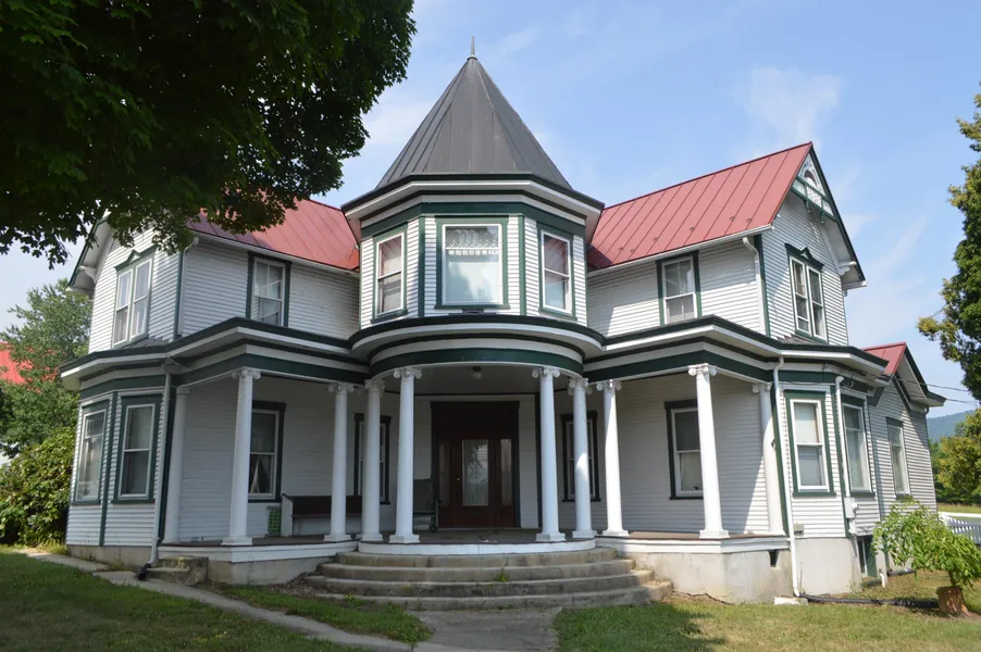 The two-story Victorian, frame Layman House was erected by builder Matthew E. Woods and embellished by finish carpenter Gratt Firebaugh. Stylistic details include bay windows, sawn and turned work in the gables, corbeled brick chimneys, stained and leaded glass windows and elaborate interior trim. Although the extent porch is a Classical style replacement that dates to 1914, it nevertheless employs a Queen Anne style octagonal turret over the main entrance. The entry level has large foyer, eat in kitchen, formal Dining room, Parlor, Sitting room has fireplace with insert, off this room is office/bedroom, Bedroom and full bath. The upper level has Library, 3 bedrooms and full bathroom and sewing room. The property has law office with 2 rooms. Wash house and 3 car garage. SOLD ''AS-IS''.