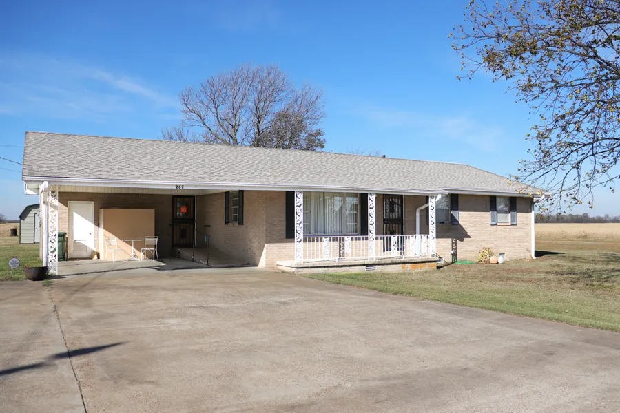 Nice brick home on 1 acre +/- in Westside school district. 3 bed 1.5 bath, 2 car carport, and a covered patio excellent condition & close to town. 3 year old roof, 1 year water heater, outside HVAC is 2-3 yrs old, new septic 3 yrs old, hardwood under carpet.