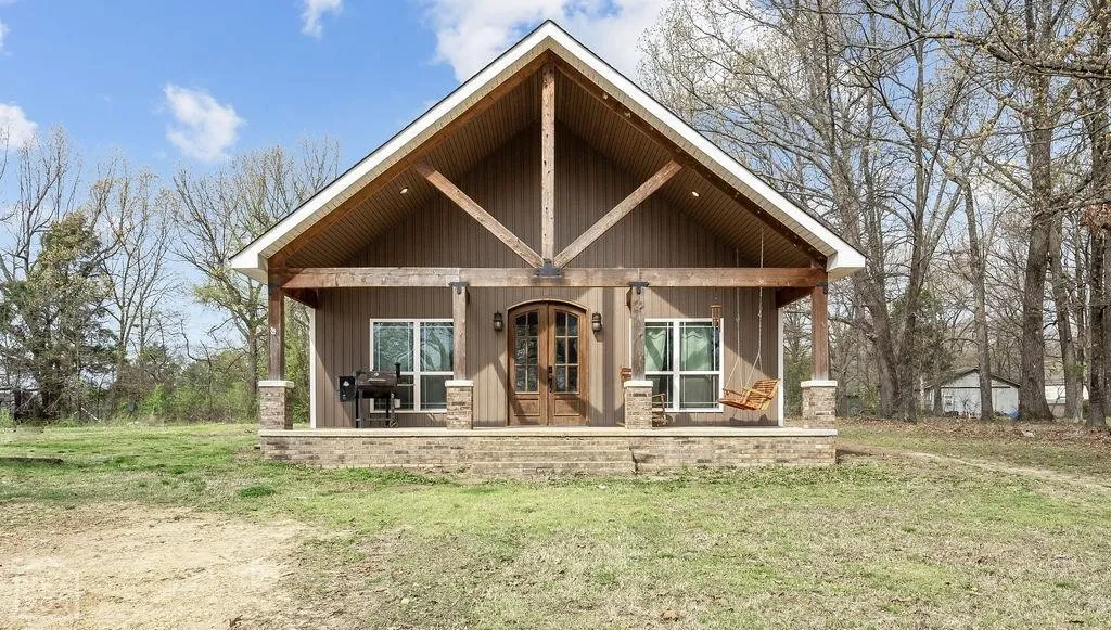 This rustic-style home is located on a spacious 1-acre lot. It's a cozy 3 bedroom, 2 bath home with concrete floors, an open kitchen, and a bonus room upstairs. There's plenty of natural light throughout. Beautiful front porch with cedar beams.