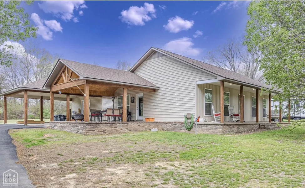 Charming cottage-style home on a spacious 2.5-acre lot. Open floor plan with dining room and breakfast bar. Kitchen features antiqued cabinets, gas stove, and appliances. Includes a covered 18x18 patio connecting to a 660 sq ft Mother-in-law suite. The suite offers a kitchen with a generous island, a cozy living room, and a handicapped accessible bathroom. There's an above ground pool with fence and deck. New HVAC and Water heater.
