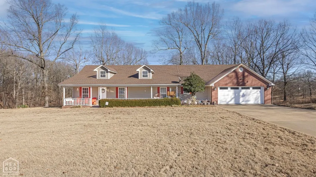 Peaceful country living on 1.15 acres with an awesome front porch to sit & relax into the peaceful views. All bedrooms & living are on the main level. The walk-out basement offers a 2nd living area with a fireplace. Improvements made are new roof (2022), new furnace & a/c (2021), new deck (2023), new garage door (2022)! The garage is finished out with hardie board siding, work bench & a large workshop. Add your own TLC touches & this home will be all you'll ever need.