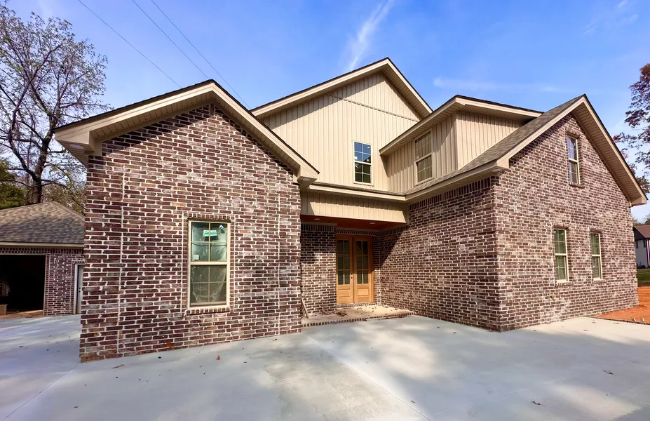 This all brick, new construction offers the perfect blend of comfort and functionality, situated on a serene 2.32 acre wooded lot just outside of Jonesboro's city limit. The property boasts two master suites, one on each floor. The downstairs master features a safe room, stand alone bath tub, walk in shower and two closets, while the upstairs master comes with a full bath featuring a walk-in shower. Enjoy the rustic charm of wood ceiling accents in the bedrooms and back porch, adding warmth and character to the home. The open-concept kitchen includes a dining area, a breakfast bar, and a walk-in pantry, making it ideal for both everyday meals and entertaining guests. Exterior features include classic red brick with white mortar, tan siding, and a side-load 2-car garage. A separate 20x25 shop provides additional storage or workspace. The home also includes a versatile bonus room, perfect ...