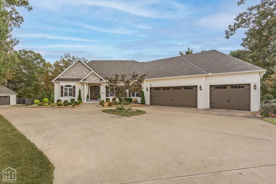 This is truly a magnificent estate home, where luxury and practicality seamlessly intertwine to create a haven of comfort and relaxation. The expansive size of 5800 square feet ensures that there is ample space for both leisure and entertainment, while the thoughtful design of two living areas caters to various activities and social gatherings.The chef's kitchen, adorned with plentiful counter space, is undoubtedly a focal point where culinary enthusiasts can indulge their passions and create culinary delights. The seamless transition between indoor and outdoor spaces, facilitated by durable Trex flooring, enhances the overall living experience, allowing residents to enjoy the picturesque view of the salt water pool and outdoor entertainment area.The addition of a private deck accessible from the master bedroom adds a touch of exclusivity, providing the perfect retreat for moments of solitude or appreciation of breathtaking sunsets. Moreover, the practical aspects of the property, such as the 3-car garage and two-car detached shop, ensure that storage needs and hobbies are accommodated with ease.The decorative fence surrounding the backyard, nestled within a wooded area, further enhances the sense of privacy and tranquility, making the outdoor space a sanctuary for relaxation and enjoyment. Overall, this estate home offers a harmonious blend of luxury, functionality, and serenity, making it an idyllic retreat for its fortunate residents.
