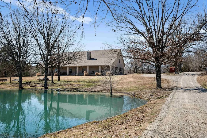 Create your story in this beautiful home nestled on 3.5 peaceful acres. For the sellers, the holidays here have been nothing short of magical grandkids running across the yard, family gathered on the wide front porch with hot cocoa, bonfires glowing beside the pond, and the smell of home-cooked meals flowing from the kitchen. Every season has brought new memories, but the holidays have always been the heart of this home. Wrap Your Holidays in Peace, Beauty, and Country Comfort... Now it s time for a new family to experience the warmth this property offers. The 4-bed, 2.5-bath home features an open floor plan filled with natural light, a spacious kitchen perfect for holiday cooking, and a welcoming living area designed for gatherings. The covered porch overlooks the peaceful pond, making it the perfect spot to watch the seasons change. A safe room, two-car garage, and beautiful acreage ...