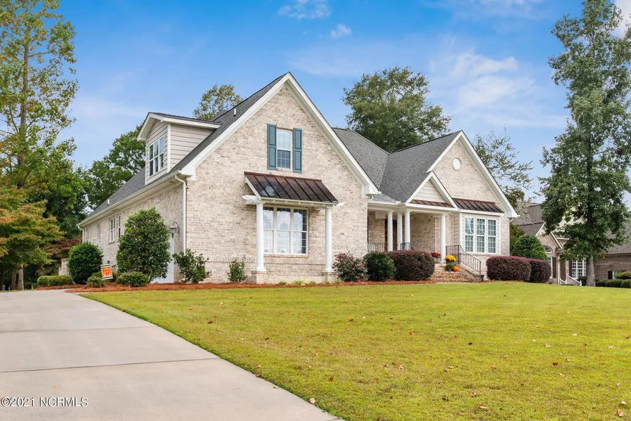 Gorgeous curb appeal defines this home from its entrance to entering the foyer of this immaculate kept home. The formal dining room is open to the living room with fireplace and custom built in for displaying cherished accessories. The kitchen offers a raised bar space, dinette area, built in desk, stainless appliances, granite countertops & pantry. The screened porch overlooks the 14th green of Taberna Country Club golf course. The master en suite features separate vanities, step in shower, jetted tub, linen closet and walk in closet. This split bedroom floor plan home offers two guest bedrooms on the opposite side of the house, hall full bath as well as a 1/2 bath for guest. The upstairs is an oversized space that could be used as an office, playroom or additional bedroom with its private bath and closet. This home has natural gas that services the heat, cooktop, fireplace logs & tankless water heater. This home also offers an underground electric fence for pets as well as a security system and irrigation system. Taberna subdivision has community canoe use & nature park that has a gazebo, picnic table, dock with bench, hiking trail - short walk from this home and dog park with covered pavilion for pet owners. All of this is free to Taberna residents. Easy commute to Cherry Pt MCAS, airport, shopping & elementary school.