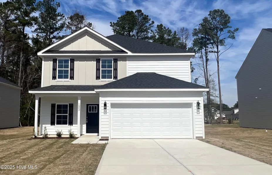 This stunning new construction home is MOVE-IN READY! This Belmont floor plan sits on a .35-acre cul-de-sac lot with 4 bedrooms, 2 full baths, and a half bath. The two-story design includes a welcoming foyer, flexible space, and an open kitchen/dining/great room. Additional highlights include a second-floor laundry room, covered front and back porches, and a front-facing double car garage. The modern kitchen boasts an island, granite countertops, and a smooth-top electric range, complemented by a mix of luxury vinyl plank, luxury vinyl tile, and carpet flooring. An ideal location just minutes from Historic Downtown New Bern, 12 miles from Cherry Point Marine Corp Air Station and 45 mins to Atlantic Beach. You can also enjoy the additional amenities including tennis courts, pickleball, community pool, pavilion and dining at the Sports Bar & Cafe socializing with family, neighbors & friends. Cable TV and fiber internet provided via the negotiated community HOA contract at only $66 per month.