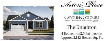 New Construction in Aston Place at Carolina Colours. The Knighton floor plan is approx. 2143 heated square feet with 4 bedrooms, 2.5 baths, dining room/office, breakfast area, family room, laundry room and covered back porch. 9' ceilings, natural gas fireplace, gas range, and smart home package. Contact an agent today for more information on floor plans, preferred lenders and more. Est completion May 2025. The Community offers extensive sidewalks for walking/jogging and bike lanes, workout facilities, pool, tennis, pickle ball courts, golf, Pavilion with restaurant, and over 30 groups & clubs for social activities. Cable TV and fiber internet provided via the negotiated community HOA contract at only $66 per month. Carolina Colours Community is known for its friendly atmosphere and inclusive community spirit. Come and enjoy all that Carolina Colours, Historic Downtown New Bern and Easter...