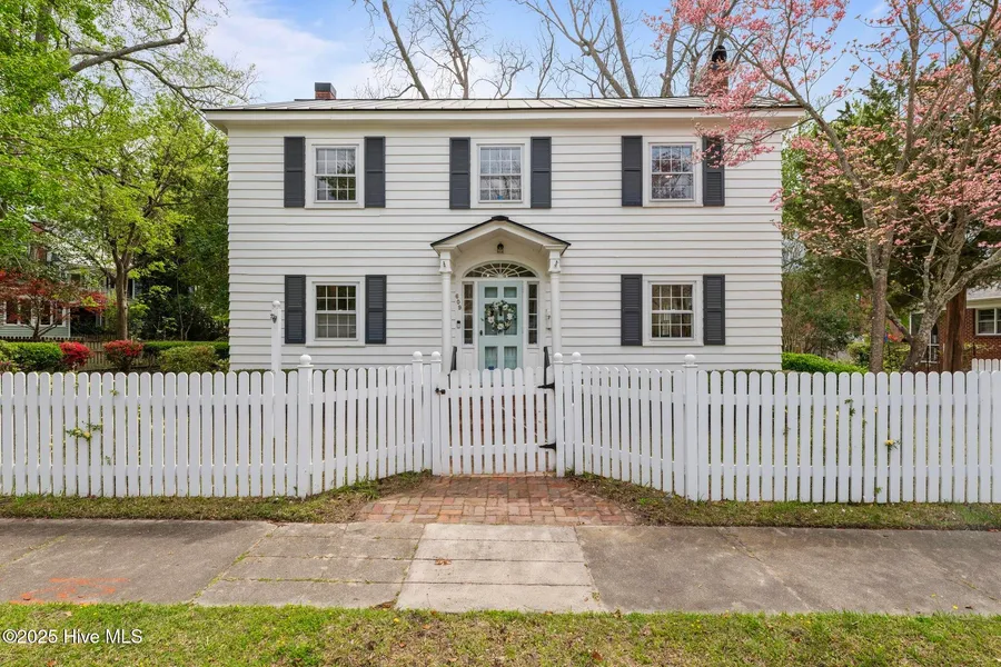 Step into timeless elegance with this beautifully renovated historic home, perfectly situated behind a classic white picket fence in the heart of everything Downtown New Bern has to offer. Combining vintage charm with modern comforts, this one-of-a-kind residence offers the best of both worlds. From the moment you arrive, you'll be captivated by the home's stunning curb appeallush landscaping, a welcoming front entry, and that iconic picket fence set the tone for what lies beyond. Inside, rich hardwood floors, a pretty fireplace (that is the centerpiece of the coziest living room ever!) and original architectural details are complemented by thoughtfully updated features, including a spacious light filled kitchen with floor to ceiling windows, stainless steel appliances, gorgeous granite countertops, and custom cabinetry. Top this off with a first floor bedroom, adjacent to a full bath, that could also be a den, office or dining room. Upstairs generous bedrooms, including a stunning primary suite, offer ample natural light and comfort, while updated bathrooms preserve the home's historic character with tasteful, contemporary touches. Whether you're hosting guests in the dining nook, relaxing by the fireplace, or cooking in the exquisite kitchen, every inch of this home invites warmth and hospitality! You will enjoy the large deck overlooking a peaceful backyard garden, perfect for entertaining, pets, or simply soaking in the beauty of your own private retreat. As if all of this is not a enough, there is a full basement, a multi-use building (which could possibly become a garage) complete with a patio, AND the house sits on nearly a quarter acre lot (larger than many Downtown) with several off street parking spaces. Located on a charming tree-lined street, this property is more than just a homeit's a piece of history you can call your own.