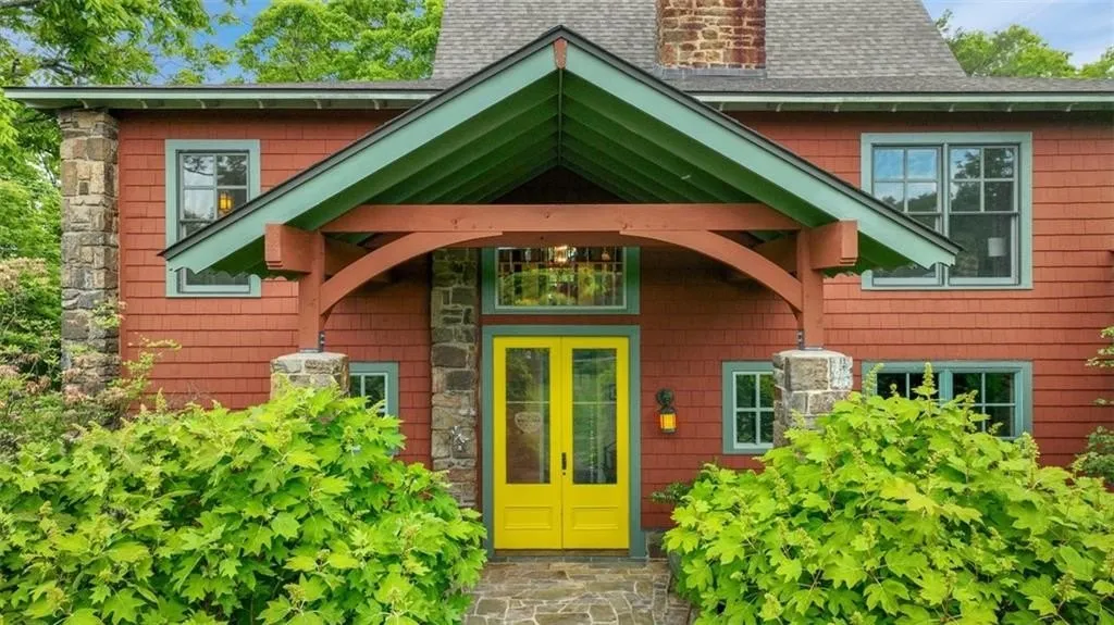 The main home showcases native stonework, high ceilings, and expansive windows inviting the outdoors in. A unique “treetop” floor plan, with kitchen & living areas on the upper level, enhances the connection to nature. The native rock guest cottage includes its own kitchen, enclosed porch with Jacuzzi & sunset deck; perfect for guests, multi-generational living, or rental income. The property features terraced gardens, lily pond, stone patio, & fenced garden with cedar gazebo. Ideal for gardeners, hunters, & nature lovers.