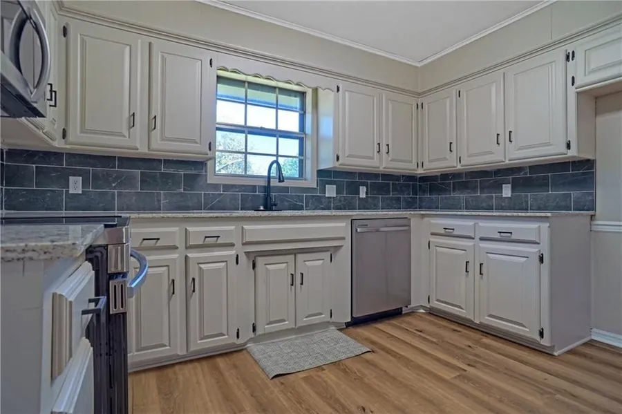 The remodeled kitchen showcases new granite countertops, new hardware, fresh paint, brand new appliances (no fridge), and all-new luxury vinyl and tile flooring throughout the home. Bathrooms have been completely remodeled with modern finishes. Enjoy peace of mind with a new roof (2 years old), upgraded attic insulation, new 2 speed HVAC system, and all-new light fixtures and ceiling fans. Step outside to a large new deck overlooking a fully fenced backyard with fresh zoysia sod in the front. This home blends style, comfort, and convenience — ready for you to move in and make it your own!
