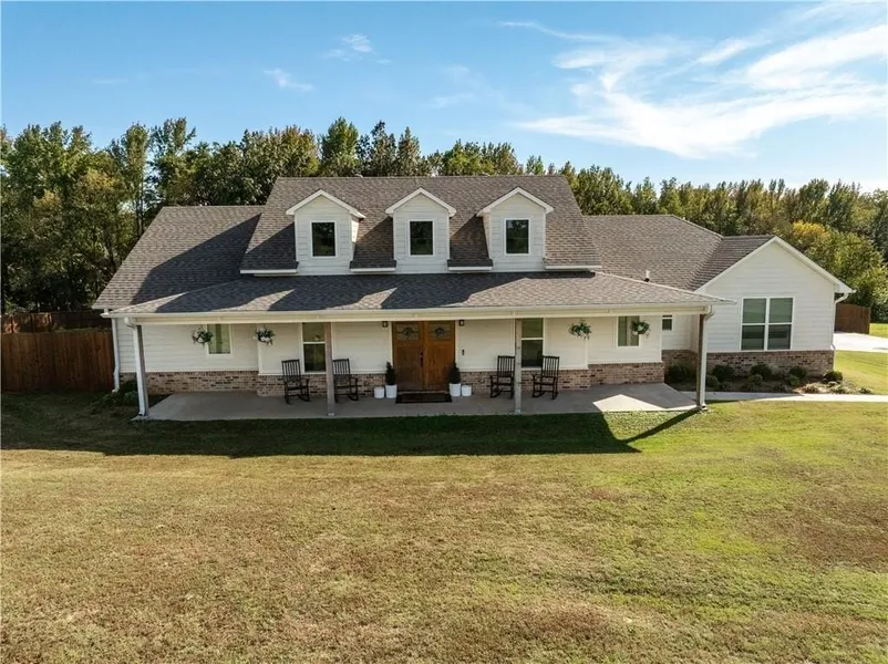 2022-built modern farmhouse on 1.5 picturesque acres just outside Van Buren! This stunning 4-bedroom, 2.5-bath home features timeless country charm with shiplap accents, floating shelves, & abundant natural light. The spacious living room offers vaulted ceilings, custom built-ins, a gas log fireplace, & large windows with serene views. The kitchen boasts shaker cabinetry, quartz countertops, stainless energy-efficient appliances, a farmhouse sink, & a huge walk-in pantry. Relax in the luxurious primary suite with double vanities, a soaking tub, custom tile shower, & an oversized walk-in closet. Additional highlights include an office, extra storage, an oversized laundry room, & an inviting porch perfect for unwinding. Beautifully maintained & move-in ready, enjoy peaceful country living just minutes from town!