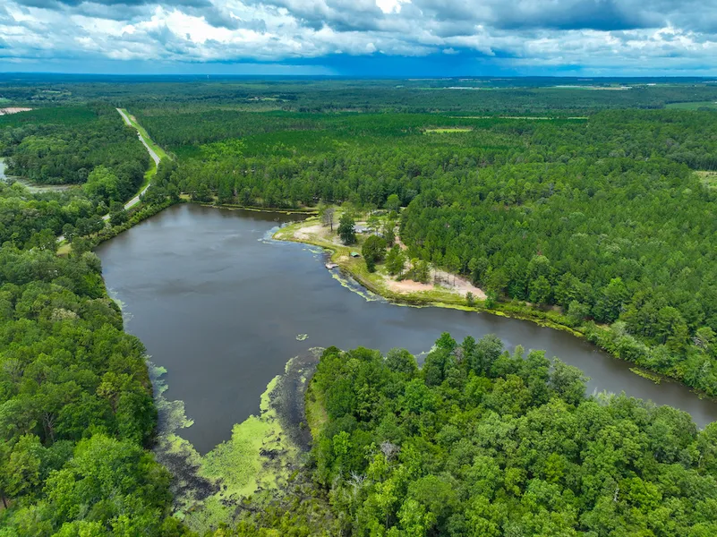 The serene Lake Henry is one of the largest lakes that you will find listed on the market in the entire state. Legend has it that this iconic property was the site of concerts from famous musicians including Hank Williams Sr. and James Brown. One of the most spectacular features is that it is mostly bordered by sprawling pine and hardwood timber. The beautiful vistas from nearly every angle of the lake will provide the most memorable of times spent enjoying the outdoors. Because of the highly unique scenery and composition of the land, there are potential business opportunities including renting as a venue, establishing a campground, or even installing cabins for a VRBO or AirBnB. With so much land, a shop with a massive enclosed area, a huge lake, and highway frontage, anything is possible! For someone wanting to have a private getaway or homesite, this too is for you. A buyer will be hard-pressed to find a land more peaceful than this. Top-caliber hunting and fishing are key characteristics of this land. The backwaters of the lake create excellent waterfowl habitat and the bordering trees provide great turkey roosts. Trail camera and deer harvest pictures show some very unique whitetail buck genetics that add to the intrigue of this parcel. If you are interested in finding out more information about this property, give us a call today. A bank letter is required to schedule a showing.