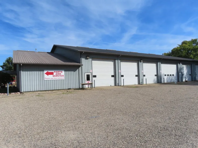 5 overhead doors on east side including wash rack and 3 on west side including wash rack. Overhead doors are 14'x14' and one is 20'x14'. Drawings of building available at the open house.
