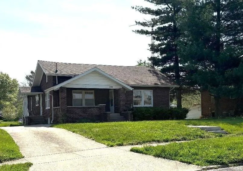 Brick home retains its charm with covered front porch, arch way door to dining room, and some original kitchen cabinets. Basement has washer/dryer hookups as well as in kitchen closet. Roof approximately 5 years old. Large lot that goes street to street. Near downtown and public library. Broker Owned