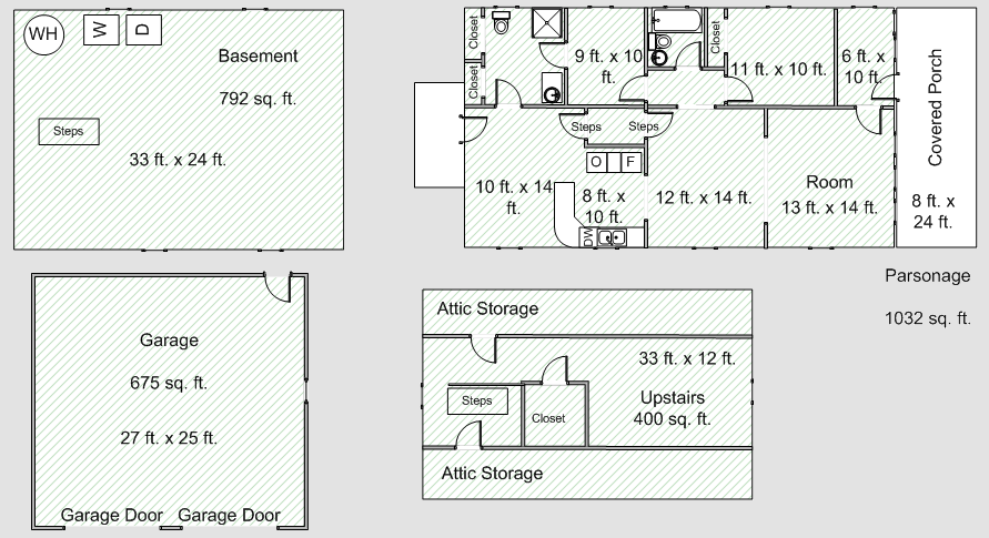 TRACT #1: Includes 2.428 acres with multiple buildings and parking for approx. 50+ vehicles. Building #1 (Recreation/Fellowship Hall) features: a massive 5400 sf 60Wx90Lx18T (at eaves) metal sided building with full basketball court (glass backboards), full kitchen, loft area, restrooms, sound proofing, forced air gas furnace, and central air. Building #2 (Church) features: 3900 +/- sf, multiple restrooms, several office/school rooms, forced air gas furnace, central air, and recent partial electric upgrade. Building #3: approx. 12x24 metal sided storage building. Overall 9500+ sf under roof, unlimited potential!