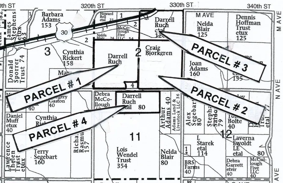 PARCEL # 4: NE1/4 NW1/4& NW1/4 NE1/4, Section 11, T83N, R38W of 5th P.M.,(East Boyer Twp.), Crawford County, Iowa. (NOTE: Complete legal descriptions available from Auctioneers).