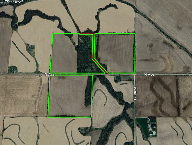 Research Parcel InformationFrom Denison, follow US-30 E/4th Ave S for 5.2 miles. Turn right onto 310th St and continue for 0.5 miles. Turn left onto Ave and continue for 0.7 miles. Tract 2 will be on your right side. Watch for signs.