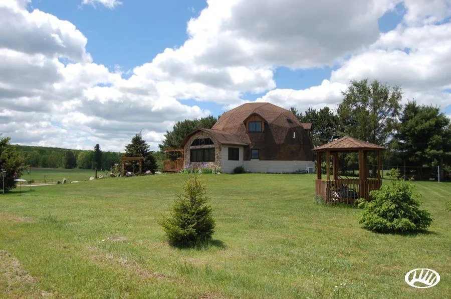PRICE REDUCED!! Unique! This beautifully constructed dome style house sits on a secluded parcel of ground with both tillable and recreational opportunity. The interior of the house offers a spacious and open floor plan with 360 degrees of beautiful views of your property. From all 3 levels, you will enjoy the unique architecture and carefully constructed features. The panoramic nature of the setting as well as great numbers of wildlife offer year around viewing of deer, bear, and turkeys as they naturally pass through this large, secluded parcel. For the avid outdoorsman, look no further as you will be able to hunt as well as fish the south branch of the famous Ausable River which lies only minutes away. Canoeing, kayaking, tubing, and fishing along with snowmobiling and cross country skiing are all readily available. As an added bonus, the renowned Forest Dunes Golf Club is only 2 miles away, a true gem for the avid golfer. For someone looking to live a relaxing, private, outdoor lifestyle in a beautiful and unique setting, this place is definitely worth a look!