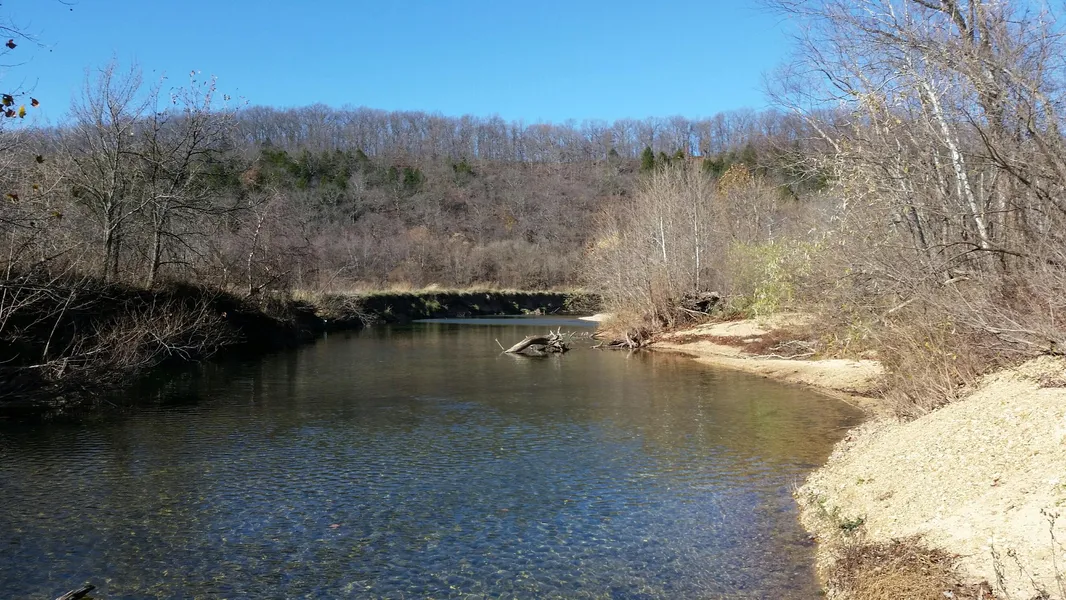 Properties like this one are indeed few and far between! It features a huge private gravel bar ideal for fishing, camping, swimming, or just kicking back enjoying the great outdoors. Also included is a nice 4 bedroom 2 bath home built in 1981. This home has been recently remodeled, all it needs is new floor coverings. Pick out your own ! A full basement featuring 2 bedrooms, a full bath, and a 2 car garage/shop area add to its charm. There are ample electrical outlets in the shop to accommodate welders, compressors, etc. 3 barns situated near the house assure you of lots of storage area. There is an older house on the property. A new roof with new gutters and downspouts was installed 2 years ago. This 55 acre parcel also boasts of a 3 to 4 acre ( Owner's estimate )stocked lake with electricity to the dock, 15+ acres of cleared ground, and the remainder in hardwood timber abundant with deer, turkeys, and other wildlife. This complete package can be yours for only $325,000. Call today, this one will not last long !