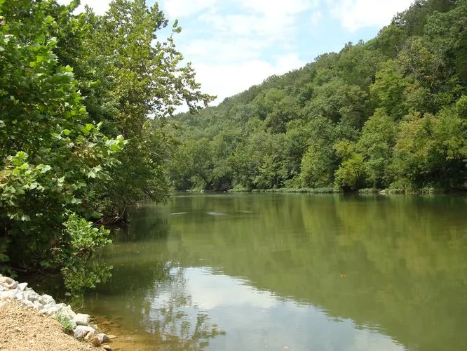 Beautiful 20+/- acre 5 year old log cabin on the beautiful clear flowing Meramec River. This farm has it all. Just minutes outside of Steelville with almost all paved roads leading to the house. House overlooks a perfect pasture for your horses or few head of cattle then to the river. This property is clearly what people think of when they think of the beautiful Missouri Ozarks and the clear recreational activities.