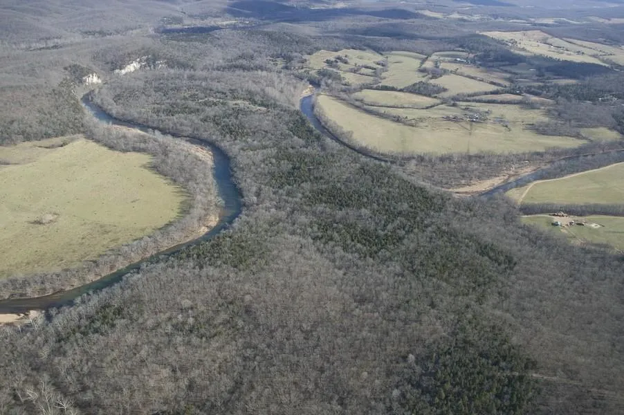 Adjoining 140 acres of virtually inaccessible public ground there are 217 acres to hunt deer and turkey. The property is at the narrowest point of the horseshoe river bend on the Upper Meramec River at majestic Vilander bluffs. These unique features provide three benefits; one of the most scenic parts of the Upper Meramec, a natural funnel area for deer and wildlife and the ability to put in and put out and the same spot for kayaking or canoeing. Fantastic fishing by wading or just from the bank.