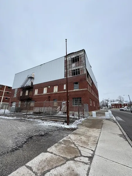 This large 4-story warehouse, with a little over an acre of land, is in a prime location waiting for your finishing touches. There are many possibilities with this property. Electric on main level. Elevator is salvageable. Not left down to deteriorate but still up to be able to put back into working order again. Seller indicates structure of building is good, and damage from tornado of 2024 is cosmetic exterior damage. No reports or inspections on file to further verify this. Lift behind the building remains with the property