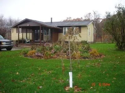 Picturesque & Secluded – Updated 3 bedroom ranch surrounded by 3 ponds and landscaping on 4.5 acres. Features formal living room with picture window overlooking ponds, formal dining room and large kitchen with sliding glass door, new carpet and vinyl flooring, recently painted, full basement, new 2-car garage, newer roof, replacement windows, hot water and pressure tank. MLS 91209