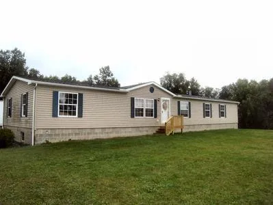 Countryside Views – upgraded 4 BR, 3.5 bath doublewide on 16 acres perched on a knoll overlooking rolling fields. 2,128 sq. ft. of one floor living, full basement, 2x6 insulated walls, central air, drywall throughout, green board in baths, 50 year shingles, tilt-in windows, fireplace, above ground pool w/decking, new well in 2008. MLS 92047