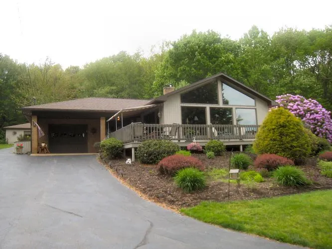Serenity & Magnificent Views Immaculate 2 acre hilltop estate with luxurious resort style living. Loaded with high end amenities, 30x23 great room with walls of glass, tongue and groove cathedral ceiling, fireplace, surrounded by decking for outside enjoyment, master suite with private sunroom, entrance to fenced in-ground pool, encased by carpet and decking. Gazebo for intimate dining, spacious open kitchen that flows into main level laundry, den, bedrooms, and great room. Attached garage and 24x30 detached garage/workshop. MLS 93498