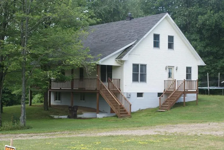 Secluded Cape Cod 5 bedroom, 2 bath home on 4.5 acres. Large kitchen with oak cabinetry, generous room sizes, natural gas heat, steel beam fortified 3-stall 2-story garage, 40 wooden deck overlooking yard with mature maple and pine trees. MLS 94119