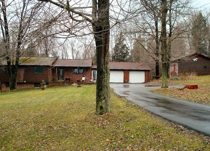 Great Country Location - 4 Bedroom , 2 bath brick ranch with recent updates including new oak kitchen, ceramic tile kitchen flooring, Pergo flooring in living room, dining room, & entry. Newer furnace, Pella doors, most windows. Spacious living room with brick fireplace. Lower level family room with unfinished brick fireplace and 4th Bedroom or office. Breezeway connects house and 2-car garage. Paved driveway. Large rear deck. Outbuilding with 3 horse stalls situated on 3.44 acres near Gibson Park. MLS 95766