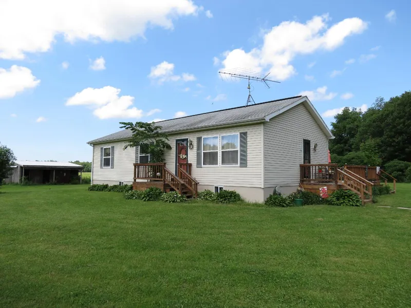 Cozy Ranch 4 Bedroom, 2 bath home on rolling 20.01 acre lot, fully applianced oak kitchen, dining room with sliding glass doors to large deck, full basement with finished bedroom and potential for family room, barn and storage shed. MLS 97120