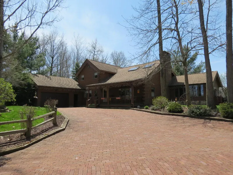 Ideal Country Retreat Custom built log home with open floor plan, main floor master suite, natural wood trusses with halogen lighting, family room, spacious great room with skylights, vaulted ceiling, and brick floor-to-ceiling wood burning fireplace with barn beam mantle and raised hearth. 2-Car attached garage plus detached garage/workshop with apartment. Located on 1.72 acres backing on Hailwood golf course. MLS 98007