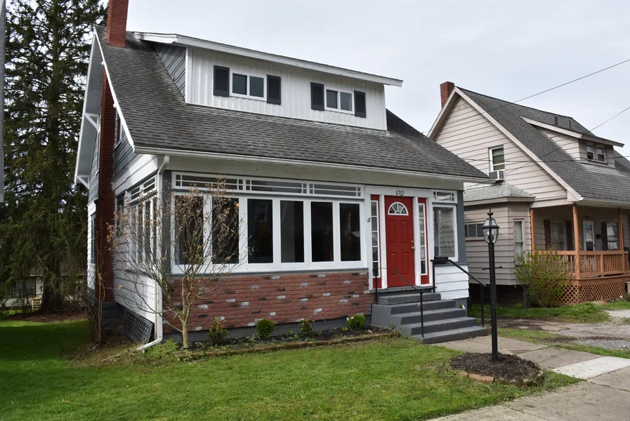 Newly Remodeled Mid-Century Home - 3 Bedroom, 2 bath Two-Story with beautiful new hardwood floors and trim in most rooms, recently remodeled kitchen with a new stove, refrigerator, and dishwasher, formal living room with a brick gas fireplace, and dining room with an attached tile bathroom, enclosed front porch, full walk-out basement with a laundry area and 3rd toilet. Convenient location close to all in-town amenities.