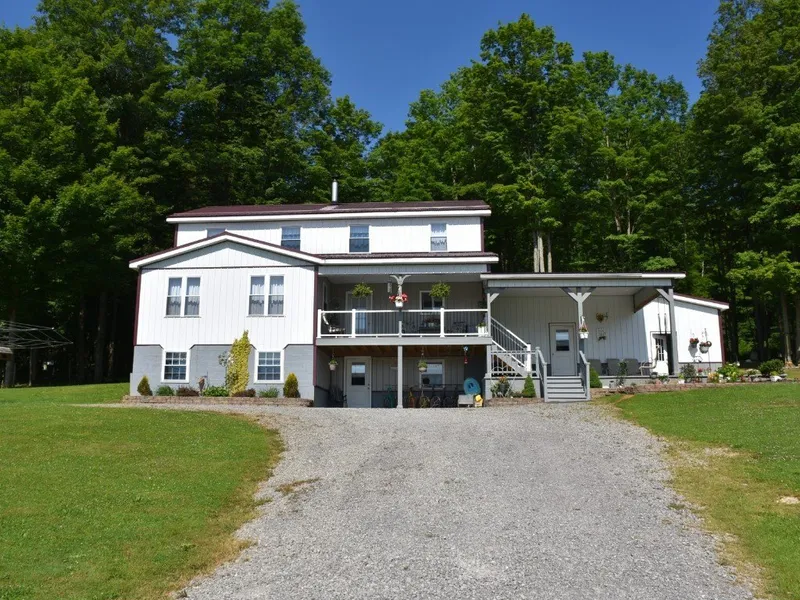 Tucked away on a serene and private 16.9-acre wooded lot, this extraordinary 7-bedroom home offers the perfect blend of functionality, natural beauty, and potential to create the retreat of your dreams. This unique property features a large, stocked pond with a dock-perfect for fishing, kayaking, or relaxing. The beautifully maintained grounds include mature hardwoods, select timber, manicured landscaping, and a variety of fruit trees and berry bushes. A 5-stall horse barn with ample space for tack and feed. Multiple versatile outbuildings including an income-producing woodworking shop and separate retail fabric shop with its own dedicated entrances and utilities. Inside the main residence, spacious living areas and seven generously sized bedrooms with a main floor main bedroom provide comfort and flexibility. This one-of-a-kind property offers endless possibilities. Enjoy rural living w...