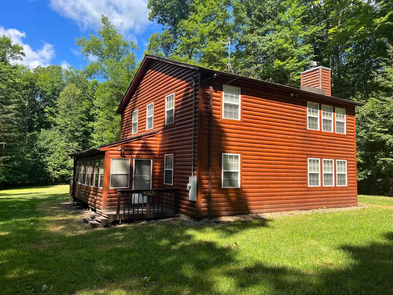 Have you been searching for a cozy cabin to entertain your friends and family?! With 6 bedrooms and 1.5 baths, you will have room to accommodate the whole family. The cabin is in the middle of the property in a long lane, which offers the perfect seclusion and privacy. As you enter the cabin, you will be greeted by the true cabin feel with an open concept and knotty pine galore. The large living area features natural lighting, cathedral ceilings, and a large wood fireplace. The generous eat-in kitchen is very friendly and will come with the major appliances. It is the perfect place to have a meal with your family or all of your hunting buddies. The remainder of the main level offers 2 bedrooms, a utility room and a nice secondary entrance. A front enclosed porch also makes for an enjoyable place to sit and relax. The second level has 4 nice size bedrooms, a half bath and a small office n...