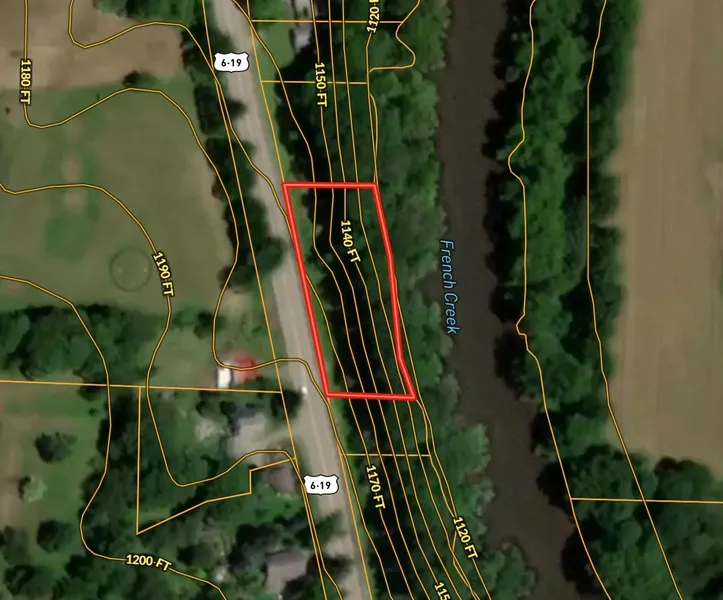 1.64 +/- Acres boarding French Creek, just South of Venango, PA. The property is located behind the guide rail along Route 6/19 and is mainly wooded hillside.