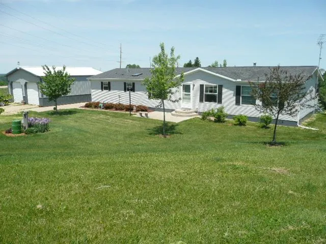 Spacious home conveniently located only 5 miles to Mississippi River. This modern ranch home has large rooms throughout and features a master bedroom suite with full bath and huge walk-in closet. Open floor plan from kitchen through living room areas. Nice kitchen cabinets plus island and built-in desk area. Covered deck plus patio area to enjoy the scenery. Two car garage has 8' high doors and the 30'x60' pole shed has 12' doors on both ends, half concrete floor and loft storage. Beautiful landscaping
