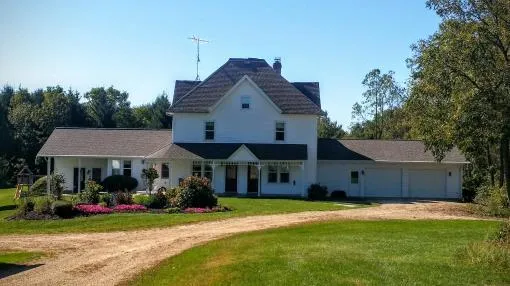 Restored farmhouse with new additions marries the charm of the past with the functionality and comfort of the present. Situated on 177 contiguous wooded acres in Southwest Wisconsin at the end of a private road invites thoughts of country home retreat, hunting paradise, bed and breakfast potential, and future significant timber value. In 1992, 60 acres were planted into a hardwood tree plantation featuring oak and black walnut trees. Over the last 23 years this plantation has been well managed, groomed, and pruned with the goal of producing veneer type trees that will one day reap a bountiful harvest. The last few years the plantation has been managed by a private forester and the DNR. Originally built in 1906, the four-square farmhouse began the extensive restoration process in 1976. At that time new wiring, plumbing and drywall were added along with a wood burning fireplace in the livi...