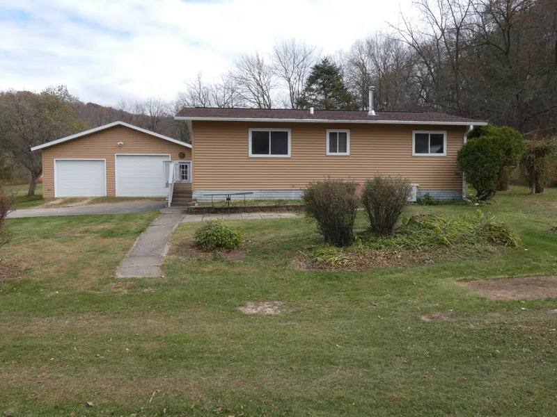 Extraordinary opportunity for some rural acreage in such a convenient location surrounded by all the beauty and recreational opportunities mother nature has to offer in the Wisconsin River Valley. About 64 acres mostly wooded, 10 acre field in bottom has been rented plus a 3.5 acre file on top just out of CRP great for food plots and a place for hideout cabin. Wildlife is abundant, whitetail deer hunting, turkey, morel mushrooms. Simple ranch home, well maintained with full unfinished basement. All appliances included. Newer large 2 car garage, several older farm buildings. Un-zoned township Wyalusing just before the bridge to Crawford County on County C. Call for a closer look at this beautiful property today.