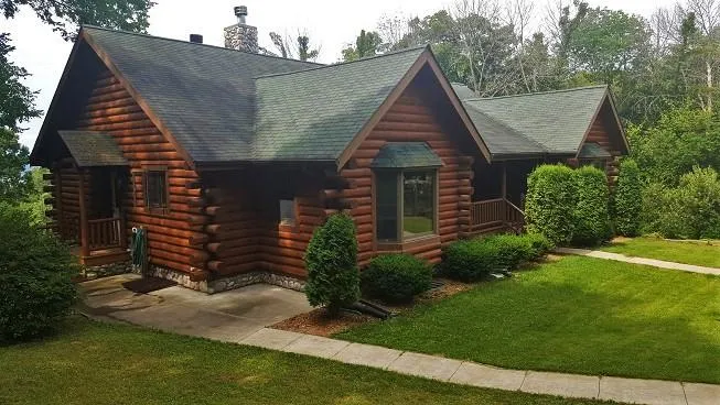 4 Bedroom, 2 1/2 bath log home nestled on 3 acres of woods and landscaped yard with an in-ground pool! The main level has a large eat-in kitchen with a cooktop island and plenty of storage and counter space. Enjoy the spacious main level living room with a stone fireplace, vaulted ceiling with tongue and groove wood and a wall of glass with dual sliding doors that take you to a large entertaining deck. The large deck overlooks your in-ground pool and you will enjoy views of the Mississippi River and river valley before you! The main master bedroom with master bath provides you with the privacy you desire. The lower level of this log home is fully finished with eat-in kitchen, living room with wood burning fireplace, 2 bedrooms and a screened in sun room with hot tub. This Wisconsin log home is located just minutes from fishing, boating and playing on the Mississippi River!