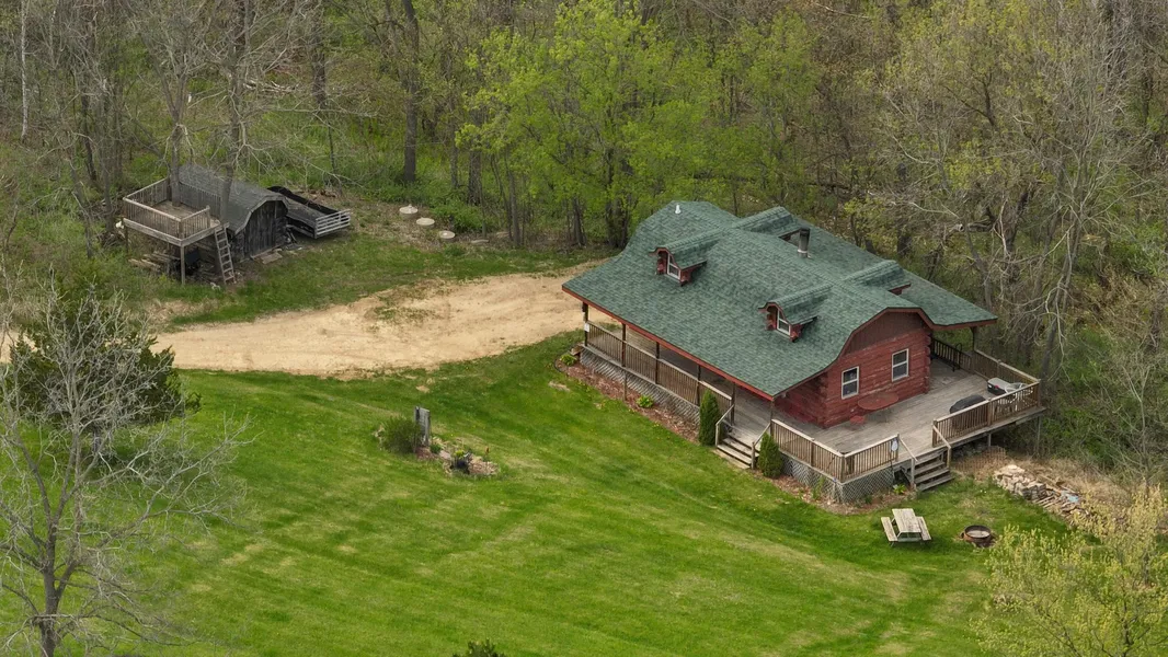 A spacious wrap-around deck offers the perfect venue for sunset cocktail hours, morning coffee, or simply gazing across the undulating landscape of the Mississippi River Basin. Down below, a fire pit beckons for stories under the stars and laughter shared with loved ones. Whether you're entertaining guests or simply seeking solitude, this outdoor haven enhances the cabin's magic.