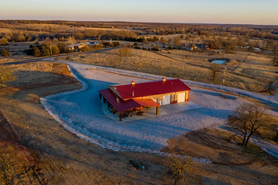 Check out this 520 +/- acre turn-key Oklahoma cattle ranch! Live, enjoy, and make memories on this beautiful property. It is located 35 minutes from Tulsa and just over 1 hour from Oklahoma City. Drive up to a new efficiently built 100'x60' barndominium with over 3,500 square feet of living space, 4 bedrooms, 2.5 baths, a custom kitchen overlooking the living space, and a huge rock fireplace with views of the ranch. There is a built-in storm shelter, along with an additional safe room that are both accessed through a 3,500 square foot insulated and heated shop, with four large 16’ overhead doors. An additional porch space creates a great entertainment area with a fire pit and hot tub. The details of this home are truly exceptional! Two additional red iron buildings are part of the property as well. One is a three sided 50'x75' equipment shed and the other is a 60'x40' insulated shop with a full bathroom and dual drive through overhead doors. This high-end working facility includes a covered concrete tub and chute area with a large set of holding and pipe catch pens. There is brand new fencing and cross-fencing throughout the property with pipe supports, overhangs, and corner posts. There are six different pastures, which primarily consist of Bermuda and native grasses, as well as 11 stocked ponds. Large red oaks, white oaks, pecan trees, and more are throughout the property, as well as multiple creeks and draws that make way to great Creek County whitetail and turkey hunting. Six enclosed tower blinds will remain with property. An additional 160 +/- acre long-term lease transfers as well. Additional equipment, feeders, and more stay with the property at this price. Contact Zane Goodwin today for more details!