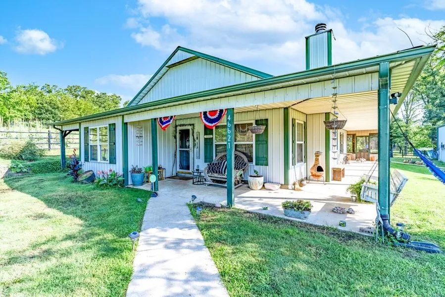 This 2 bedroom, 2 bath metal farmhouse is tucked away on 5 +/- acres just outside of Depew, Oklahoma, centrally located between Tulsa and Oklahoma City. As you enter the home the open floor plan gives the home a nice big, but comfortable feeling, featuring a large family room and dining room that open into the kitchen. The wood-burning fireplace in the family room is the perfect addition. The kitchen is equipped with all stainless steel appliances and granite countertops. Down the hall you will find the 2 bedrooms, 2 full bathrooms, and laundry room. The master bedroom is complete with an en-suite bath, walk-in closet, and a door leading to the back of the home.