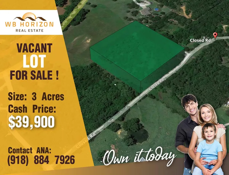 Closed Road, Sapulpa, OK 74066: only a 9-minute drive to Sapulpa, which makes it an amazing property for you! Enjoy your freedom with this 3-acre lot. Supermarkets, schools, churches, shops... everything is close! Bring your family! Enjoy your retirement! Zoning is agriculture. We offer this property at a discounted ROCK BOTTOM cash price so that one lucky buyer can own the perfect property. Other properties sell for $50,000. We offer this property for only $39,900! We also offer this property with a very affordable, no credit check seller financing. We love to work with buyers to help ensure the best deal that suits any budgeting needs.