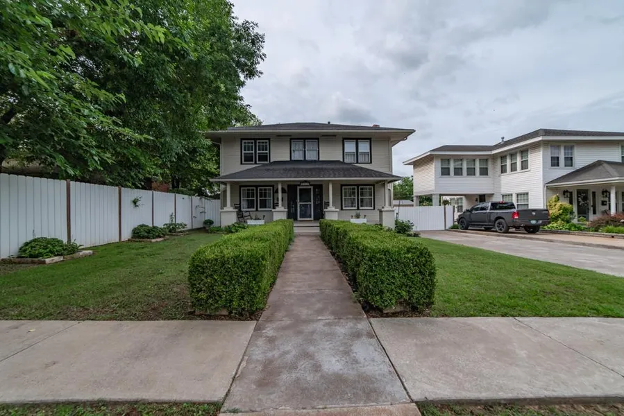 Immaculate 2 story home located on W. 11th in Bristow, OK. Spacious 4 bedroom, 2.5 bath featuring formal living, dining, den and office! You are transported back in time when you arrive at this 1911 home that has been meticulously maintained. You are greeted with a beautifully manicured front entrance. As you enter the home the grand staircase makes quite the statement. Original red oak hardwoods in excellent condition throughout. The formal living area features a beautiful fireplace and built-ins. The large den provides a second living area with separate full bath. Spacious kitchen with large walk in pantry and formal dining is great for entertaining friends and family at the holidays. Tons of storage throughout! The home features an abundance of windows for lots of natural light. 4 bedrooms and full bath located upstairs! The wrap around back deck is perfect for entertaining. 2 storage...